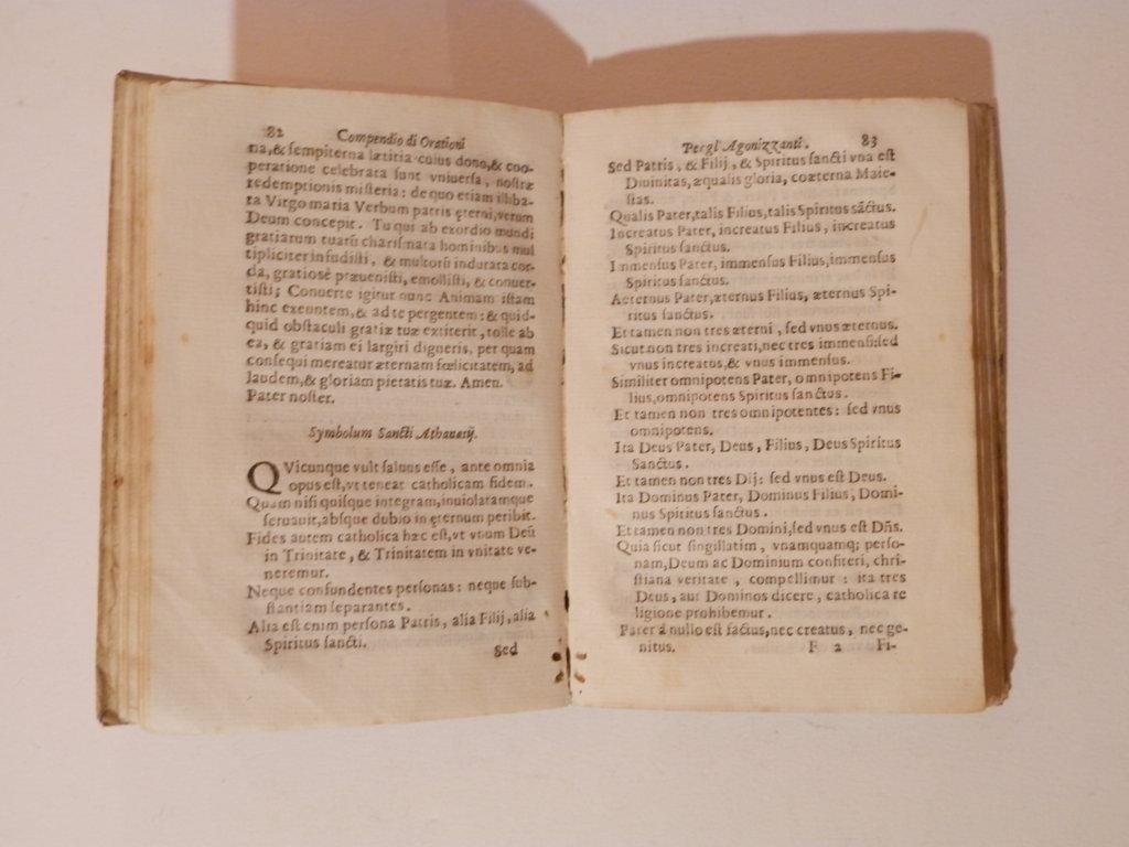 16, 15 cm, pp. 231, iniziali, incipit e finilini decorati, marca tipografica incisa al frontespizio: Colomba in coppa con motto attorno. Rilegatura coeva in pergamena floscia, antico appunto al frontespizio e all'antiporta. Leggere tracce d'uso di tarlo alla base del volume lontano dal testo, esemplare nell'assieme molto buono.. *** TUTTI I NOSTRI LIBRI SONO VISIBILI PREVIO CONTATTO MAIL O TELEFONO NELLA NUOVA SEDE DI MILANO: LIBRERIA COSMOPOLIS, VIA JOMMELLI, 22. ***