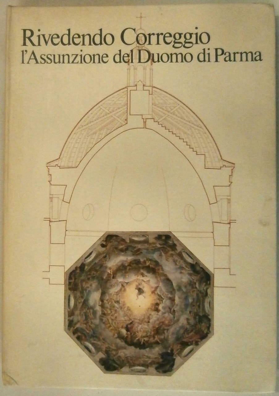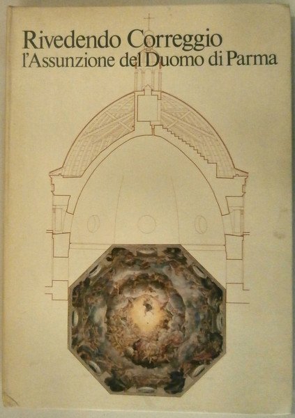 In 4, cartella in tela editoriale contenente un volume di testo (p. 78 con illustrazioni a colori e in nero) e 10 grandi tavole ripiegate sugli affreschi del Correggio della cupola del Duomo.