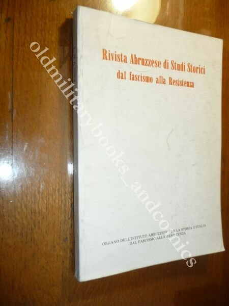 TITOLO: RIVISTA ABRUZZESE DI STUDI STORICI DAL FASCISMO ALLA RESISTENZA ANNO V Nm 1 1984 DESCRIZIONE: Arti Grafiche Aquilane L'Aquila 1980-1988 br. pp. 180 alcune ill. b/n n.t. in 8°. CONDIZIONI: Buone, vol. con copertina con segni di sporco. PESO / WEIGHT: 400 gr. without package