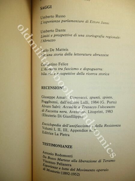 TITOLO: RIVISTA ABRUZZESE DI STUDI STORICI DAL FASCISMO ALLA RESISTENZA ANNO V Nm 3 1984 DESCRIZIONE: Arti Grafiche Aquilane L'Aquila 1980-1988 br. pp. 181 alcune ill. b/n n.t. in 8°. CONDIZIONI: Ottime. PESO / WEIGHT: 400 gr. without package