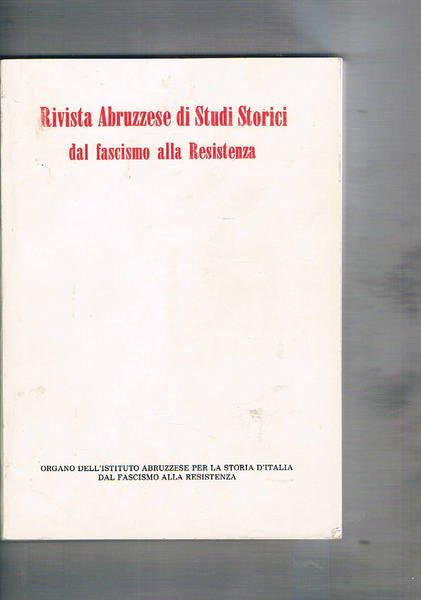 Rivista Abruzzese di Studi Storici dal fascismo alla Resistenza, anno VII n° 1-2, 1986. I processi di lavoro avanti la corte d'Appello degli Abruzzi 1934-1937; il caso Roccaspinalveti; ricordo di guerra e di guerriglia di Nicola Trolilo; ecc.