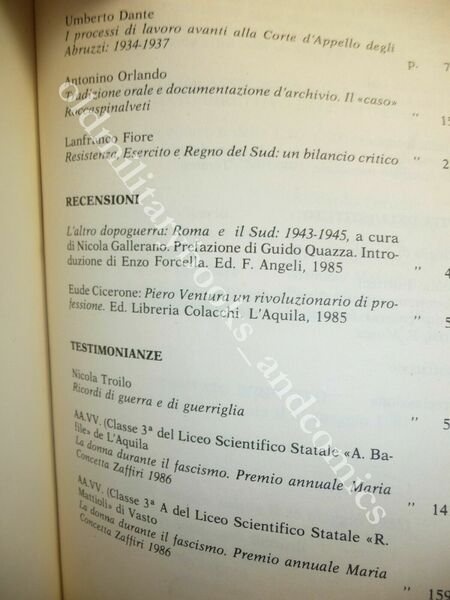 TITOLO: RIVISTA ABRUZZESE DI STUDI STORICI DAL FASCISMO ALLA RESISTENZA ANNO VII Nm 1-2 1986 DESCRIZIONE: Arti Grafiche Aquilane L'Aquila 1980-1988 br. pp. 293 alcune ill. b/n n.t. in 8°. CONDIZIONI: Ottime. PESO / WEIGHT: 600 gr. without package