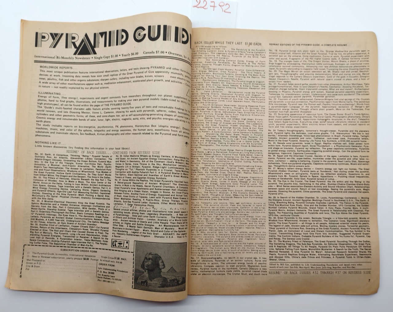 Trattandosi di una pubblicazione destinata esclusivamente ai membri della fondazione, la tiratura originale era estremamente limitata. L'esemplare conserva il timbro postale originale del 1979, un dettaglio che ne certifica l'autenticità e la provenienza storica, rendendolo un pezzo di difficile reperibilità sul mercato, essenziale per chi studia l'evoluzione del pensiero New Age e della clio-ufologia