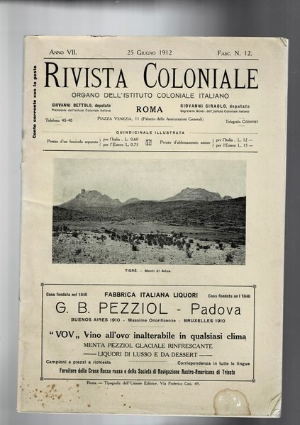 Rivista coloniale organo dell'istituto colonale italiano n° 15 giugno 1912.