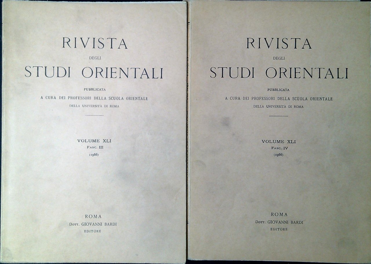 Rivista degli Studi orientali. Volume 41 Fasc-1-4 1966. Roma, Bardi 1966, Quattro fascicoli; 24 cm (71332)