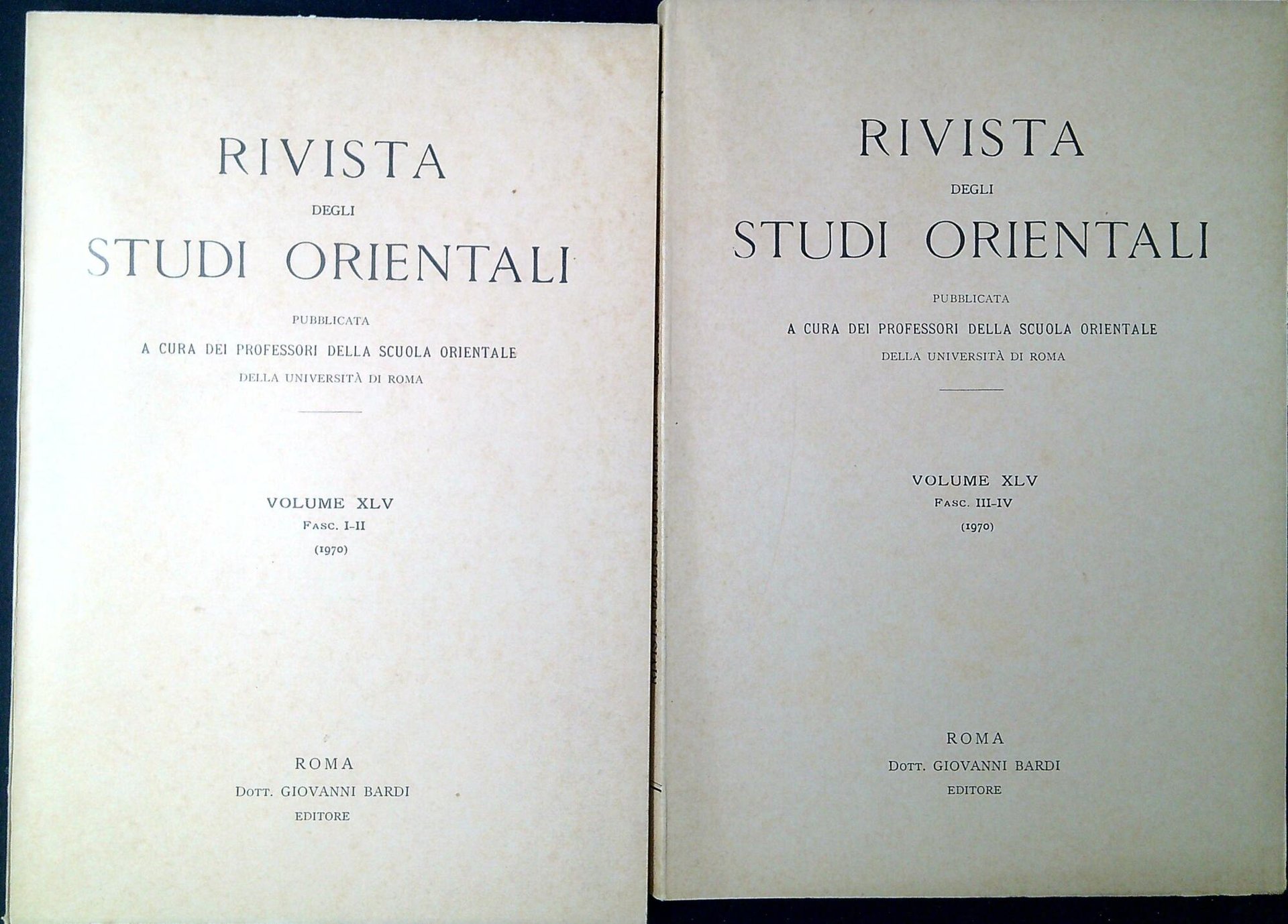 Rivista degli Studi orientali. Volume 45 Fasc-1-4 1970. Roma, Bardi 1970, Due fascicoli; 24 cm (71337)