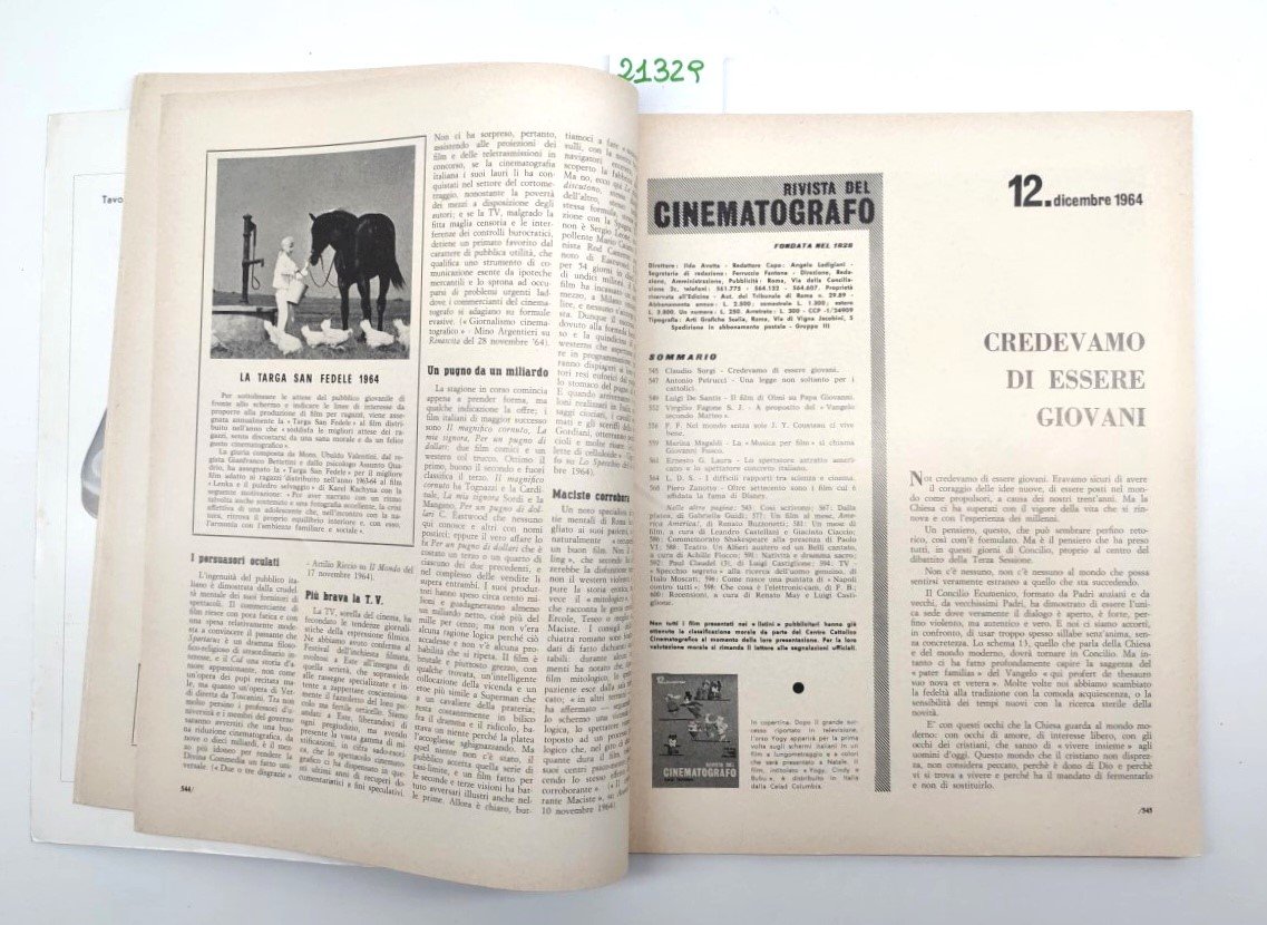 Rivista del cinematografo numero 12 dicembre 1964 orso Yoghi e Bubu