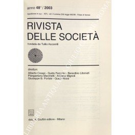 Rivista delle società. Fondata da Tullio Ascarelli. Diretta da Alberto Crespi, Guido Ferrarini, Berardino Libonati, Piergaetano Marchetti, Ariberto Mignoli, Giuseppe B. Portale, Guido Rossi. Anno 48° - 2003