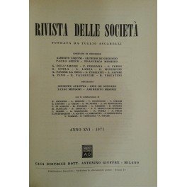 Rivista delle società. Fondata da Tullio Ascarelli. Diretta da: Giuseppe Auletta, Gino De Gennaro, Luigi Mengoni, Ariberto Mignoli. Comitato di direzione: A. Asquini, A. De Gregorio, G. Dell'Amore, F. Ferrara, G. Ferri, G. Gorla, P. Greco, A. Lanza, F. Messineo, G. Minervini, A. Pavone La Rosa, S. Pugliatti, A. Sapori, A. Tino, E. Valsecchi, B. Visentini. Anno 16° - 1971