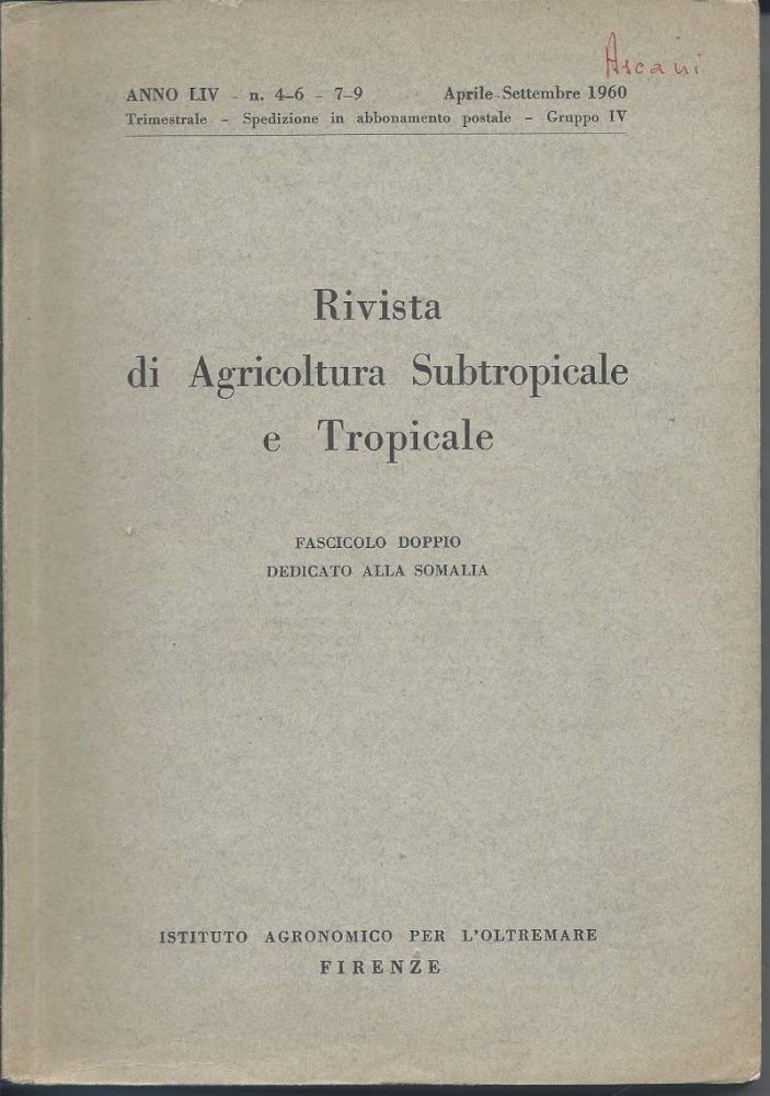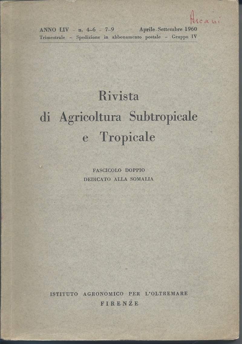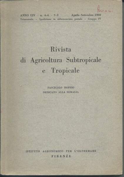 RIVISTA DI AGRICOLTURA SUBTROPICALE E TROPICALE - Anno LIV n. 4-6 - 7-9 Aprile-Settembre 1960 - Fascicolo doppio dedicato