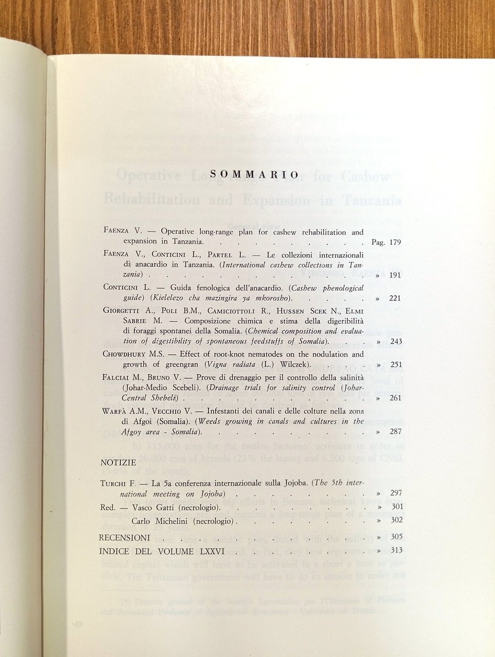 Brossura editoriale, pagine numerate da 179 a 316 con alcune figure in nero nel testo. Contributi in lingua originale, prevalentemente italiana; indice integrale consultabile nelle nostre immagini. Esemplare in ottime condizioni -- DALL'INDICE: Le collezioni internazionali di anacardio in Tanzania - Composizione chimica e stima della digeribilità di foraggi spontanei della Somalia - Infestanti dei canali e delle colture nella zona di Afgoi