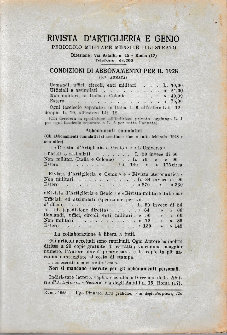 Rivista di Artiglieria e Genio. 67^ annata, fascicolo VI, Giugno 1928