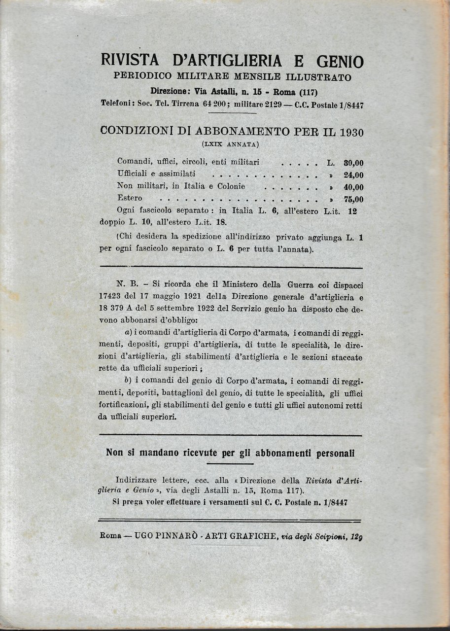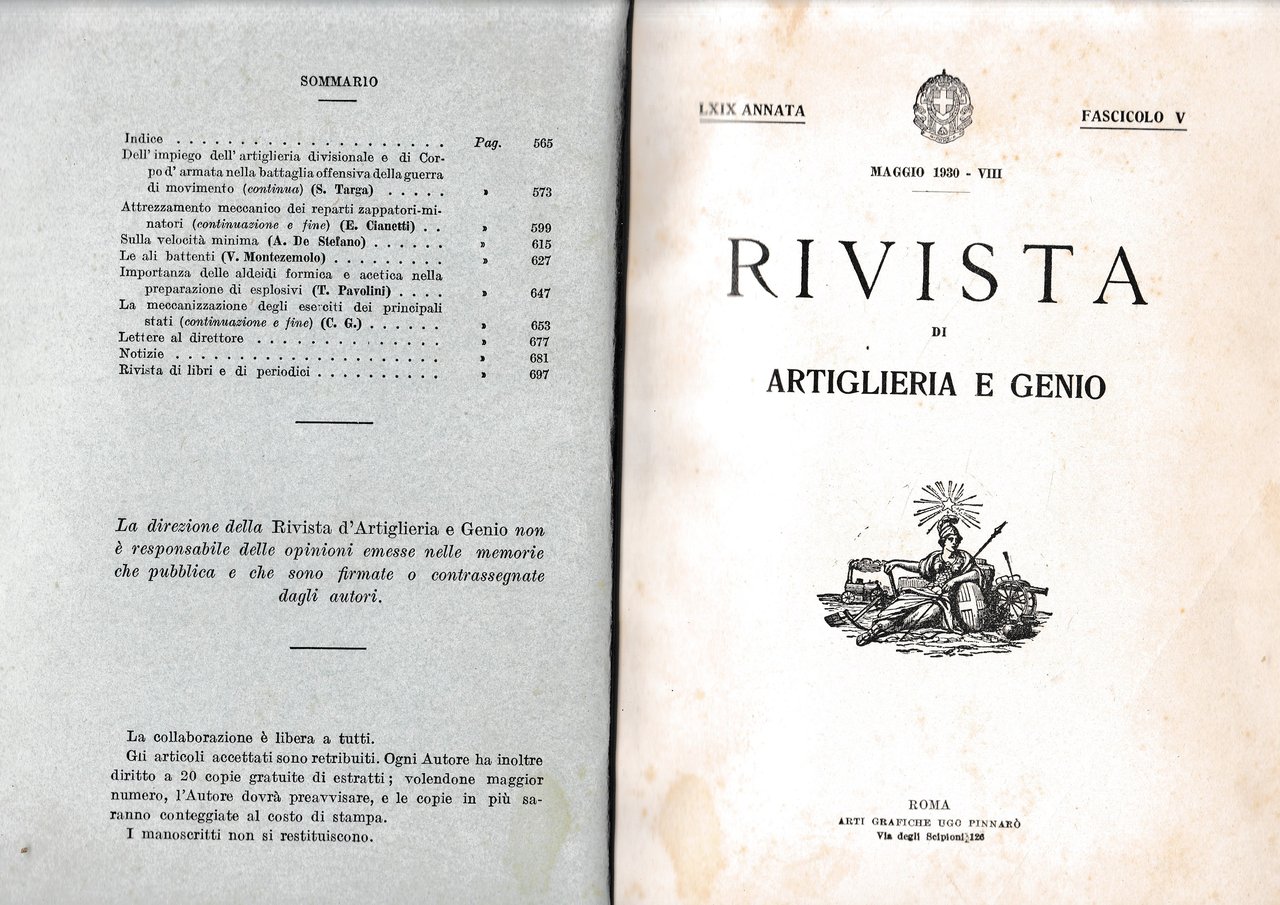 Rivista di Artiglieria e Genio. 69^ annata, fascicolo V, maggio 1930
