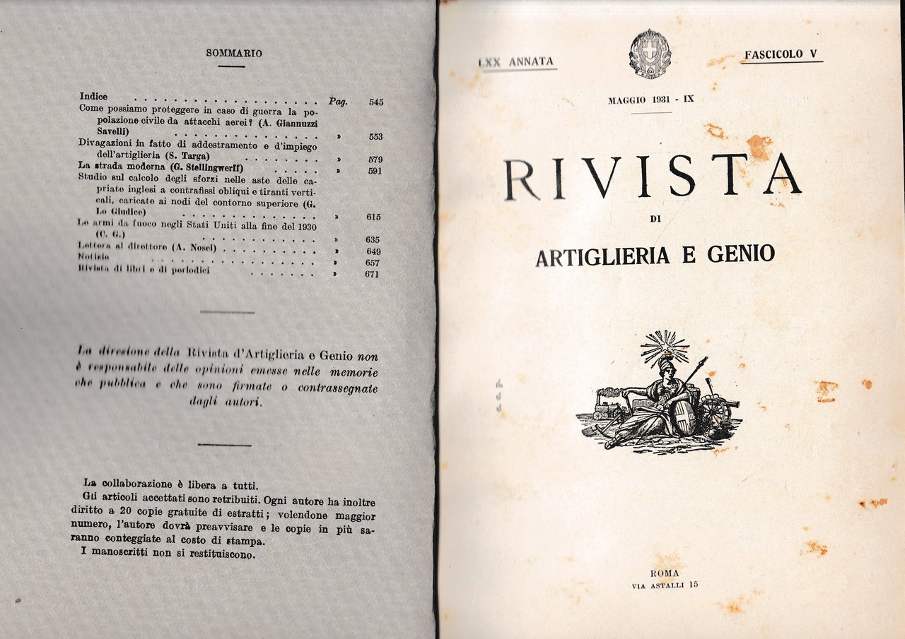 Rivista di Artiglieria e Genio. 70^ annata, fascicolo V, Maggio 1931