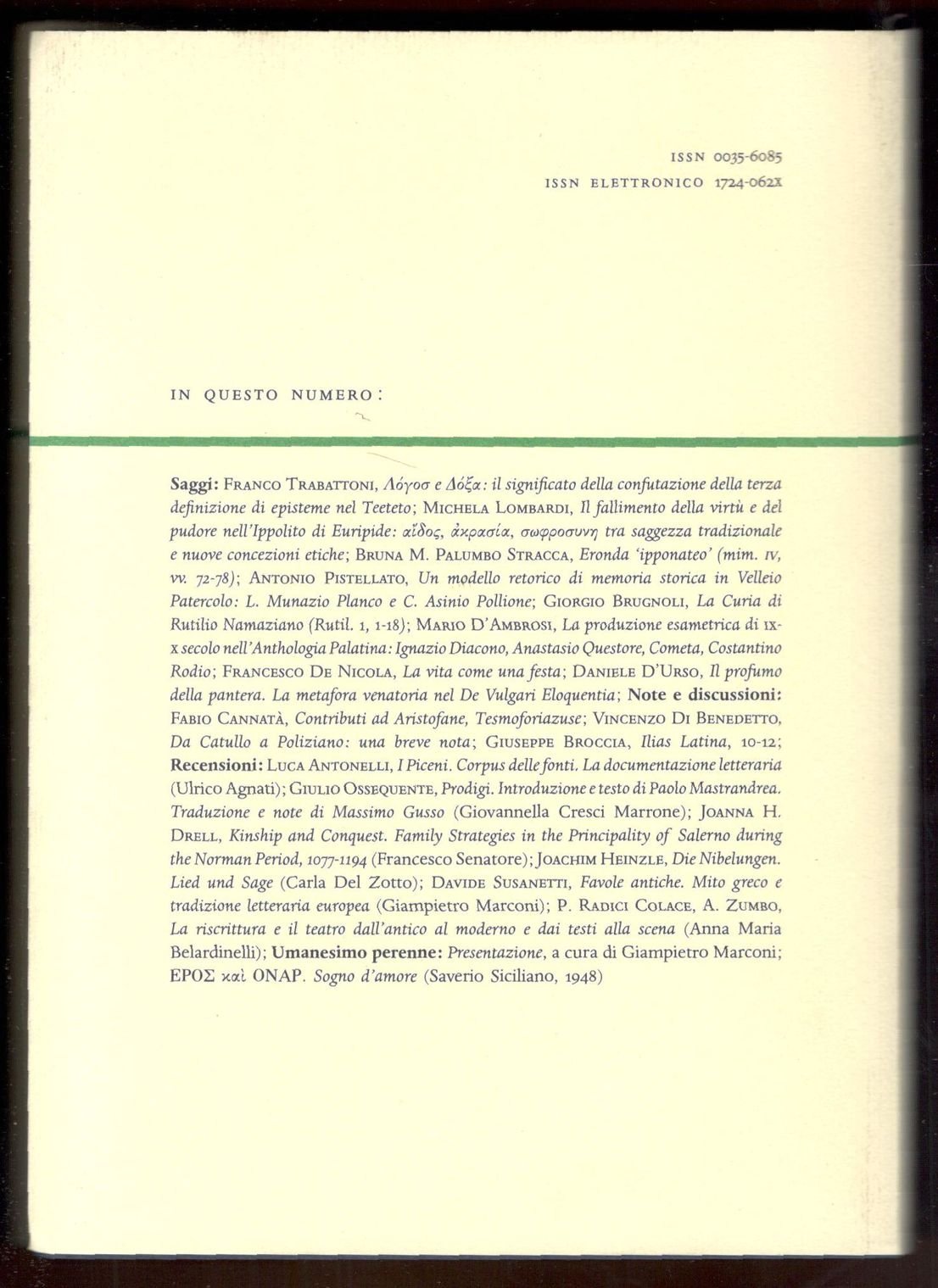 Rivista di cultura classica e medievale. Anno XLVIII. Numero 1. Gennaio - Giugno 2006