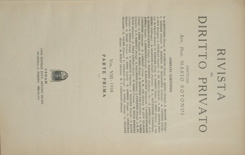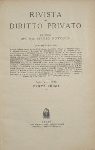 Rivista di Diritto Privato. Vol. VIII - 1938, Parte I e II