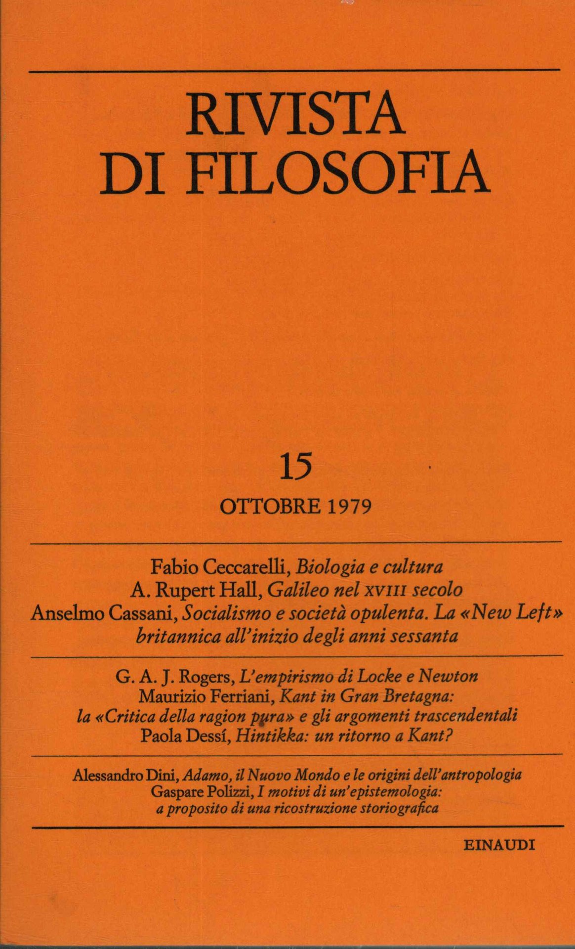 Rivista di filosofia. Ottobre 1979 - Fascicolo III (Volume LXX n.15)