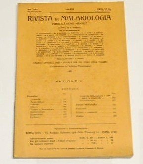 Rivista di malariologia. Pubblicazione mensile, diretta da G. Sanarelli, Organo Ufficiale della Società per gli Studi della malaria, Roma, vol. XVII (XIII nuova serie), n. 5-6 bis, sezione II, 1939, pp. VI, 222-376, cm 25, br. ed. Ottimo esemplare.