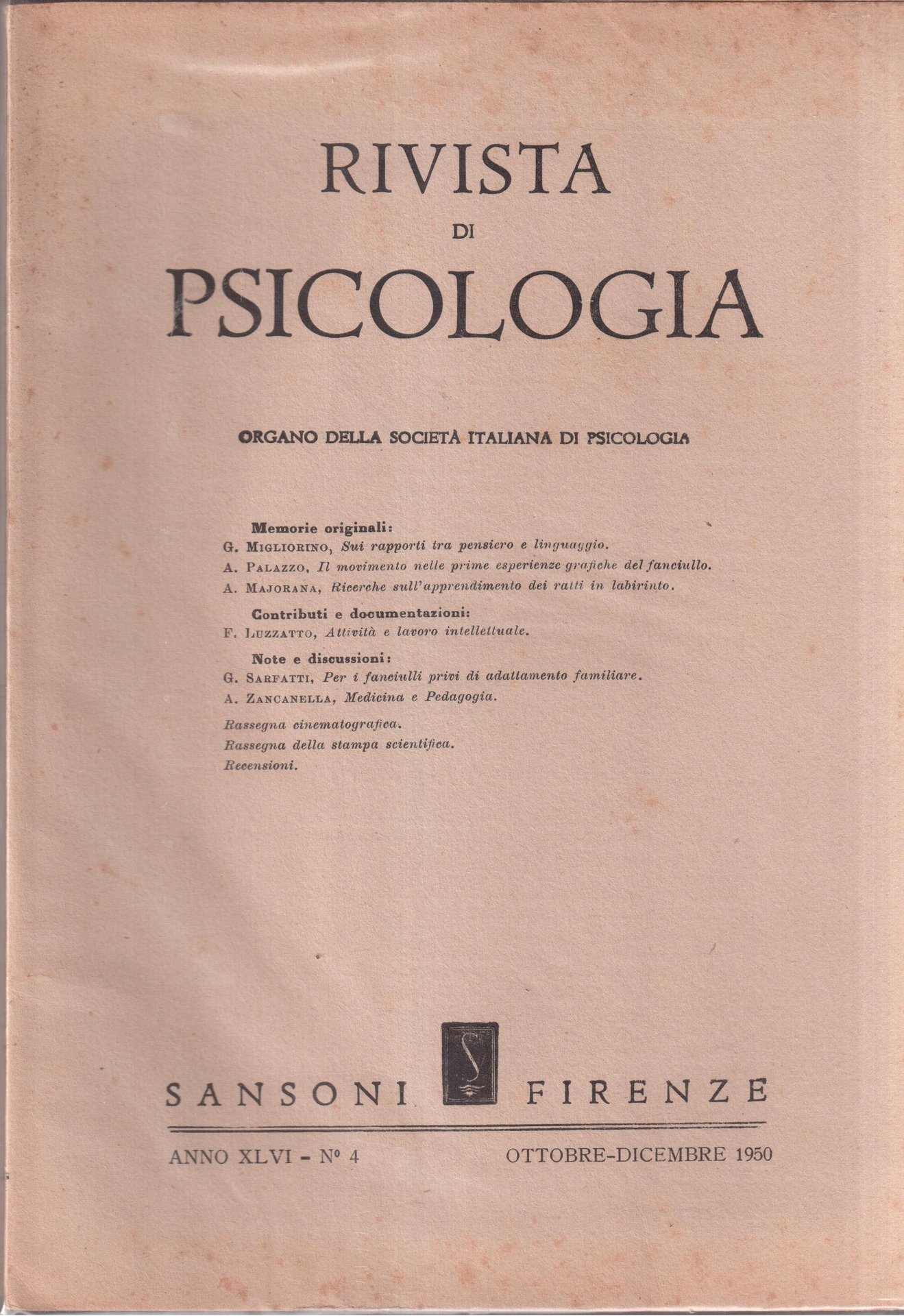 Rivista di Psicologia Organo della società italiana di Psicologia