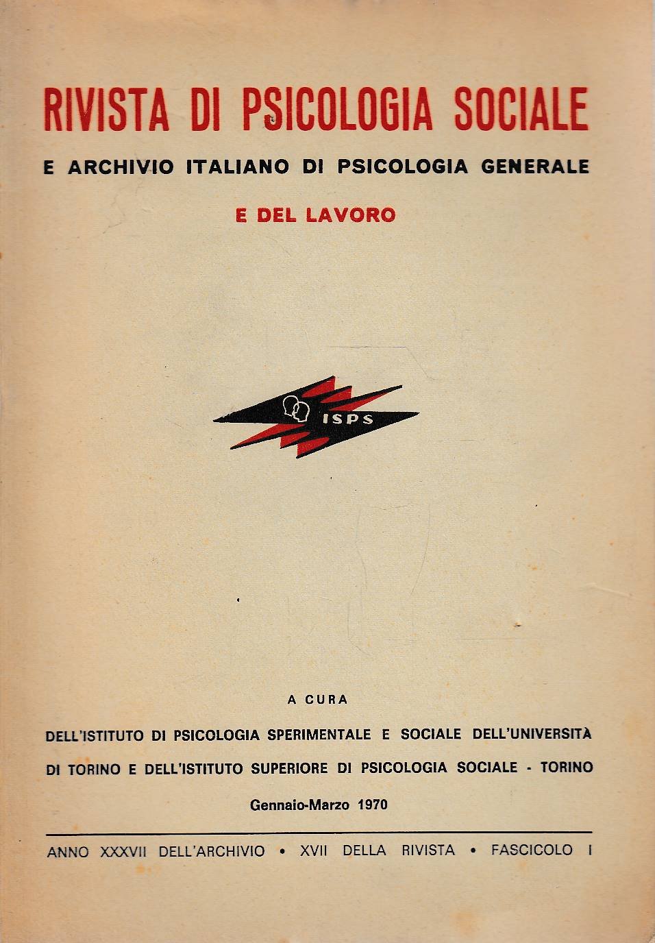 RIVISTA DI PSICOLOGIA SOCIALE E ARCHIVIO ITALIANO DI PSICOLOGIA GENERALE E del LAVORO, Gennaio-Marzo 1970