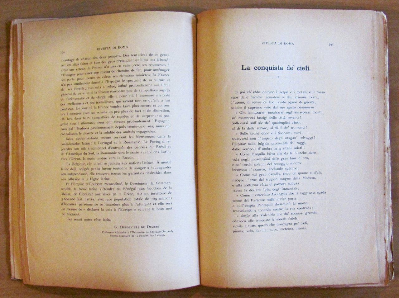 Rivista di Roma, Anno XIX - 1915. Nuova Serie Volume VII-VIII, N.23-24 - 10-25 Dicembre 1915. Brossura editoriale con piccolissima mancanza al margine alto del dorso. 17x25; pp. da 745 a 884. Buonissimo stato. , Molto buono (Very Good)