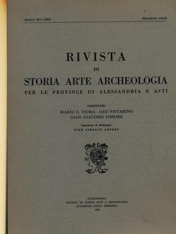 Rivista di storia arte archeologia per le province di Alessandria e Asti. Annata XCI/1982