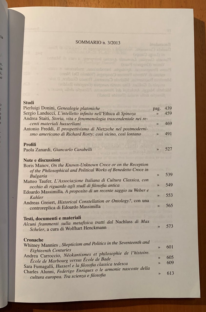Rivista di Storia della Filosofia. Trimestrale fondato da Mario Dal Pra Anno LXVIII Nuova Serie 3/2013