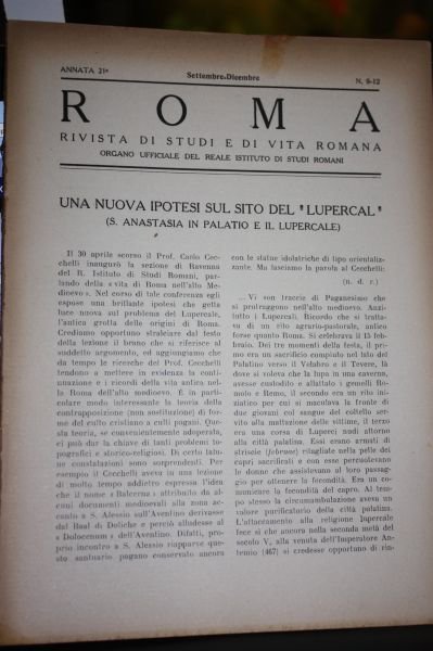 UNA NUOVA IPOTESO SUL SITO DEL LUPERCAL S.ANASTASIA IN PALATINO E IL LUPERCALE , UN'ELEGANTE CONTROVERSIA SECENTESCA SULLA RESIDENZA DEI PAPI , ORME DI VITA LEGIONARIA ROMANA NEI CUOIAMI RITROVATI A VINCONISSA, PER LA GENESI DI S.PANTALEO , TIPI DI VOLTE ROMANE TOMBA ROMANA PRESSO NETTUNO, DA PAGINE 314 A PAGINE 388, , 11200 CODICE LIBRO
