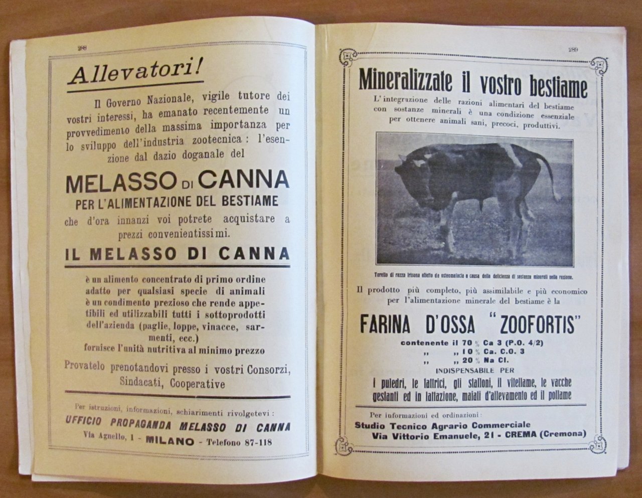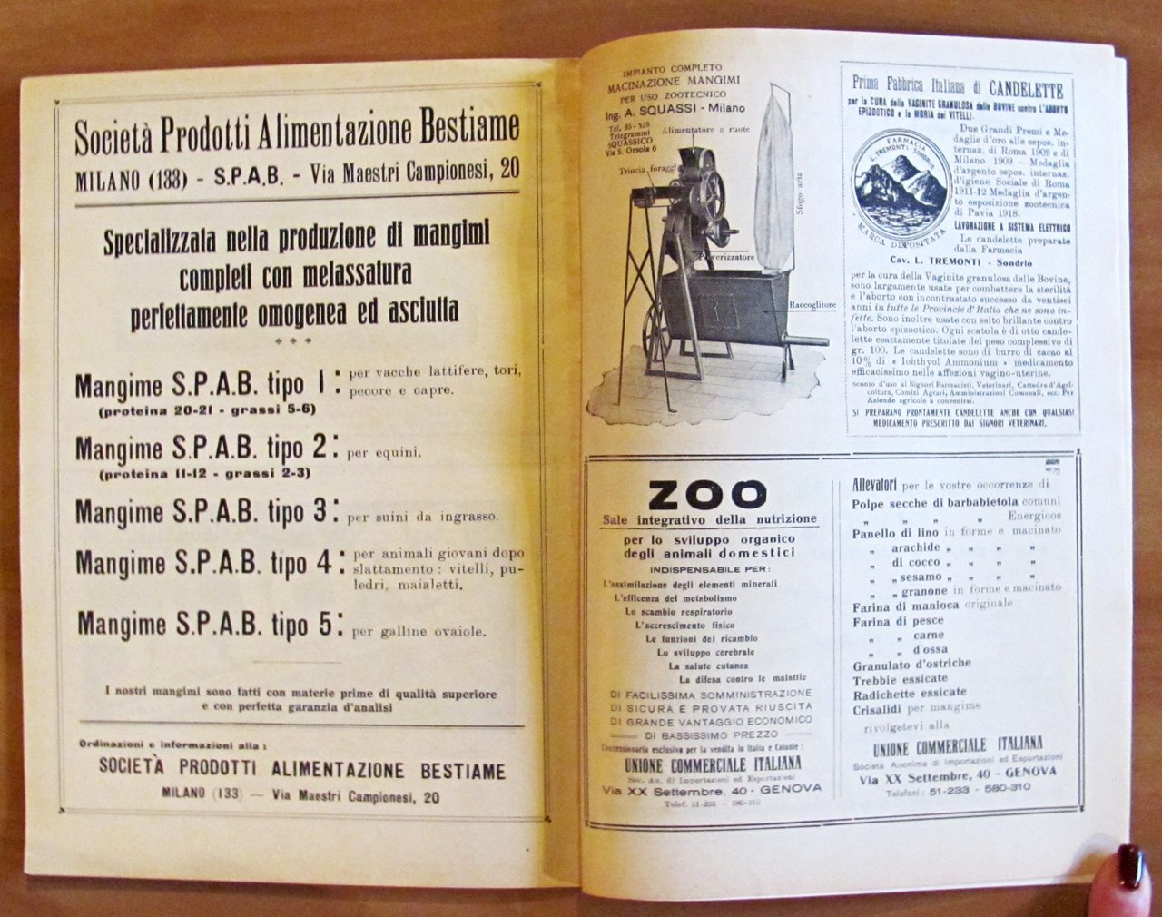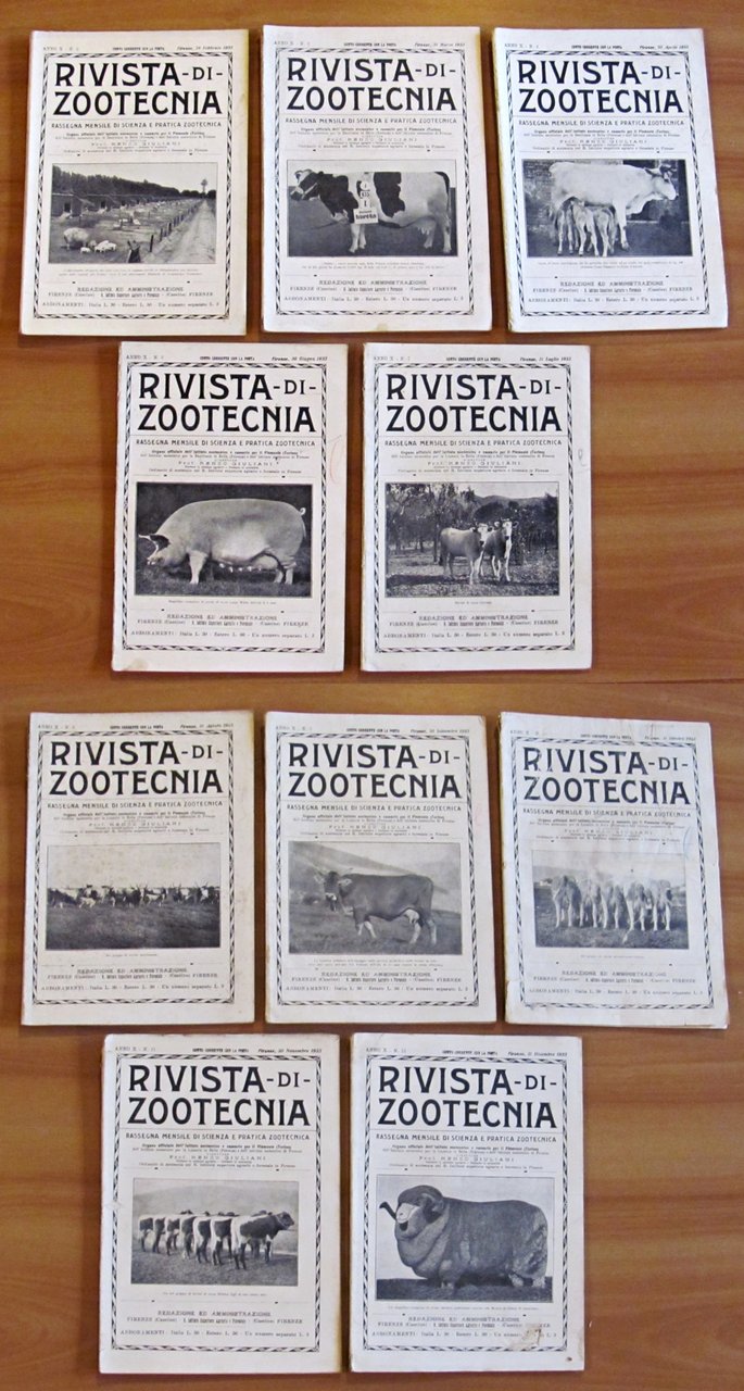 Rassegna mensile di scienza e pratica zootecnica . Lotto di 10 Volumi. Anno X - Annata Completa1/12 (- N.1 e N.5). Febbraio-Dicembre 1933. Molte illustrazioni, anche fotografiche, in b/n n.t. e belle pubblicità del tempo. Regio Istituto Superiore Agrario e Forestale. Firenze, 1933. Brossure editoriali con lievi imperfezioni e piccole mancanze ai dorsi. Interni tutti in Ottimo stato. 17x24,5. Rara e in Buonissimo stato. , Molto buono (Very Good)