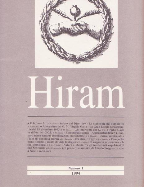 Rivista esoterismo HIRAM N° 1 anno 1994. ORGANO DEL GRANDE ORIENTE D'ITALIA.