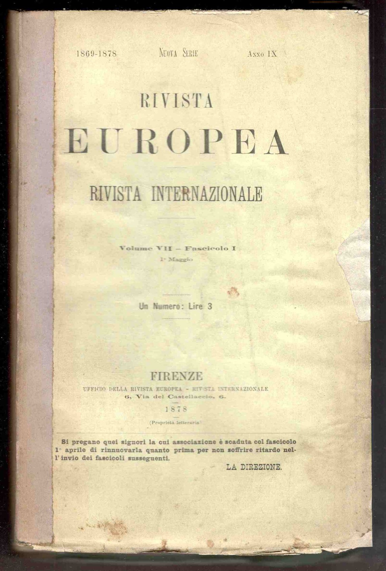 Rivista Europea. - Rivista Internazionale. Volume VII. Fascicoli I-IV. Maggio-Giugno 1878