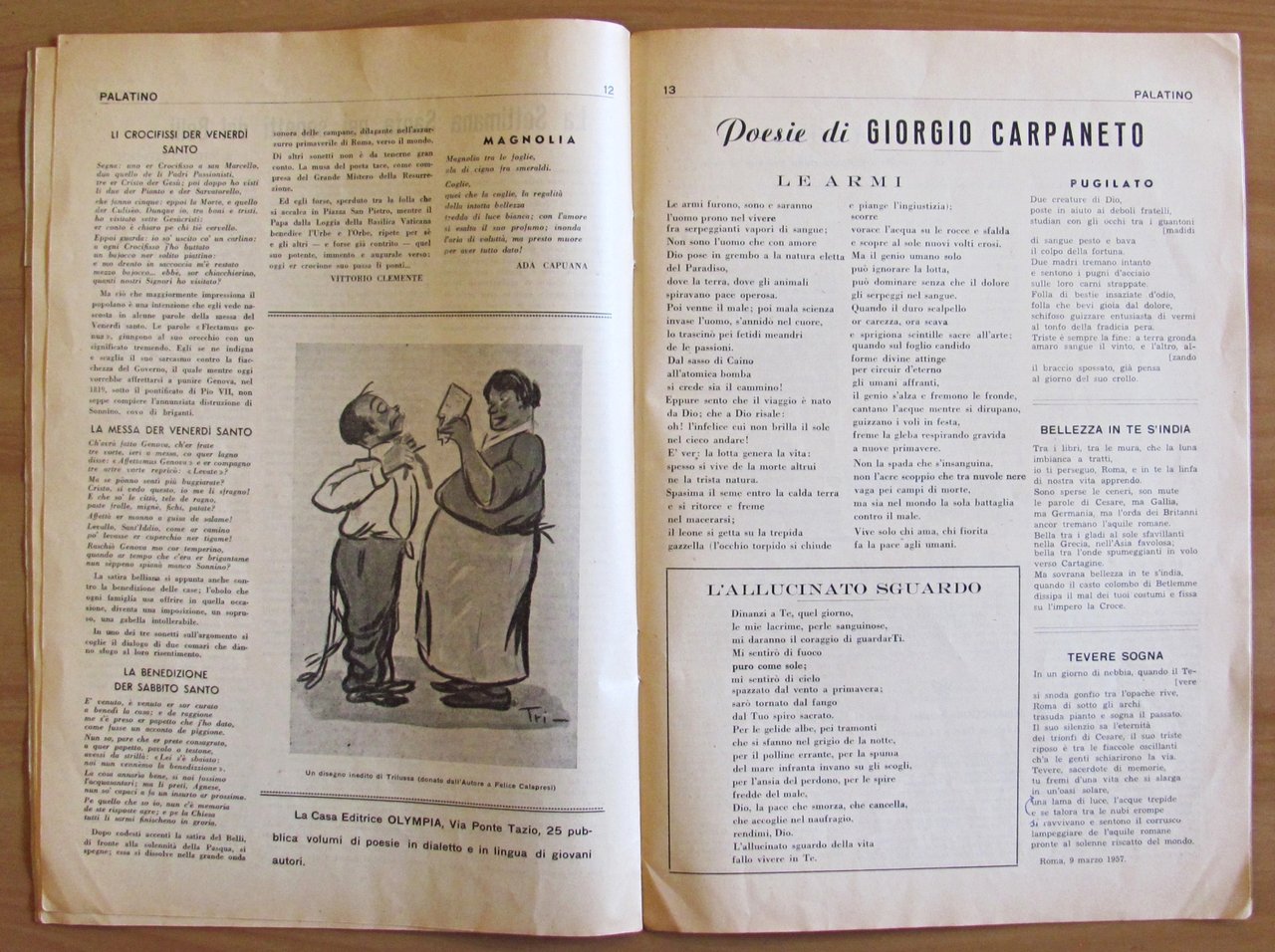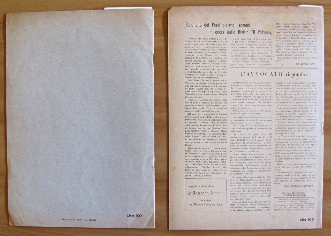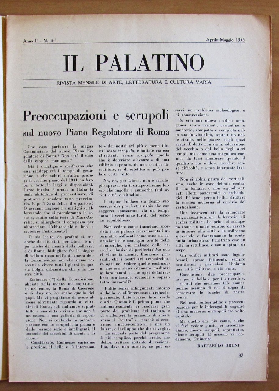 Rivista IL PALATINO Lotto di 6 Fascicoli, 1955 N.1/10 (-N.8) + N.1 1957