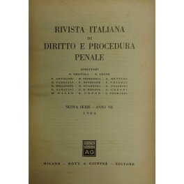 Rivista italiana di diritto e procedura penale. Diretta da G. Delitala, G. Leone, F. Antolisei, B. Petrocelli, G. Bettiol, G. Vassalli, P. Nuvolone, P. Frisoli, G. Guarneri, G. Bellavista, G. Foschini, G. Sabatini, D. Pisapia, M. Gallo, G. Conso, C. Pedrazzi. Nuova Serie, Anno VII - 1964