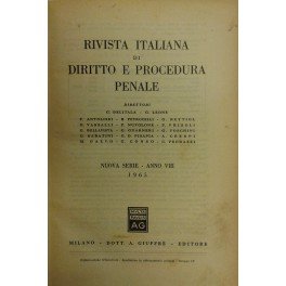 Rivista italiana di diritto e procedura penale. Diretta da G. Delitala, G. Leone, F. Antolisei, B. Petrocelli, G. Bettiol, G. Vassalli, P. Nuvolone, P. Frisoli, G. Guarneri, G. Bellavista, G. Foschini, G. Sabatini, D. Pisapia, M. Gallo, G. Conso, C. Pedrazzi. Nuova Serie, Anno VIII - 1965
