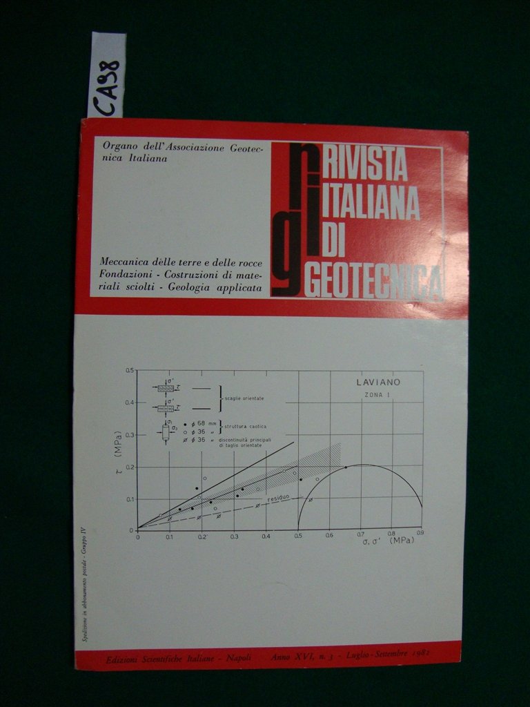 Meccanica delle terre e delle rocce, Fondazioni, Costruzioni di materiali sciolti, Geologia applicata; Anno XVI, n. 3 - Luglio/Settembre 1982; Anno XVIII, n. 1 - Gennaio/Marzo 1984;Anno XXIII, n. 1 - Gennaio/Marzo 1989,Anno XV, n. 4 - Ottobre/Dicembre 1981; illustrazioni in b.n. n.t.