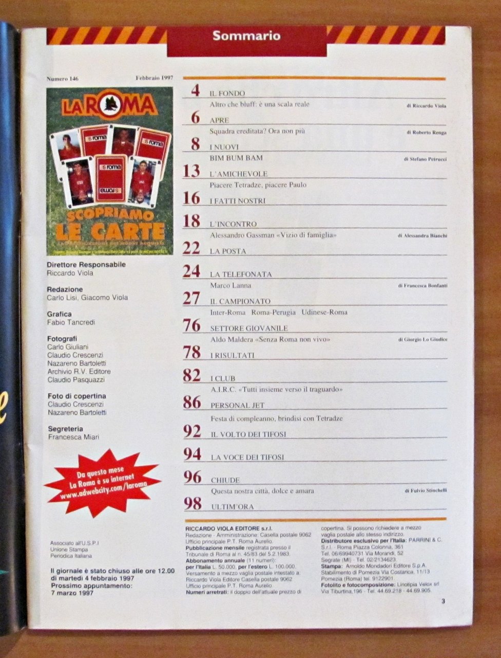 Rivista LA ROMA N.146, 1997 - POSTER/MANIFESTO dei Vent'Anni del CUCS - A. Gassman, De Rossi...