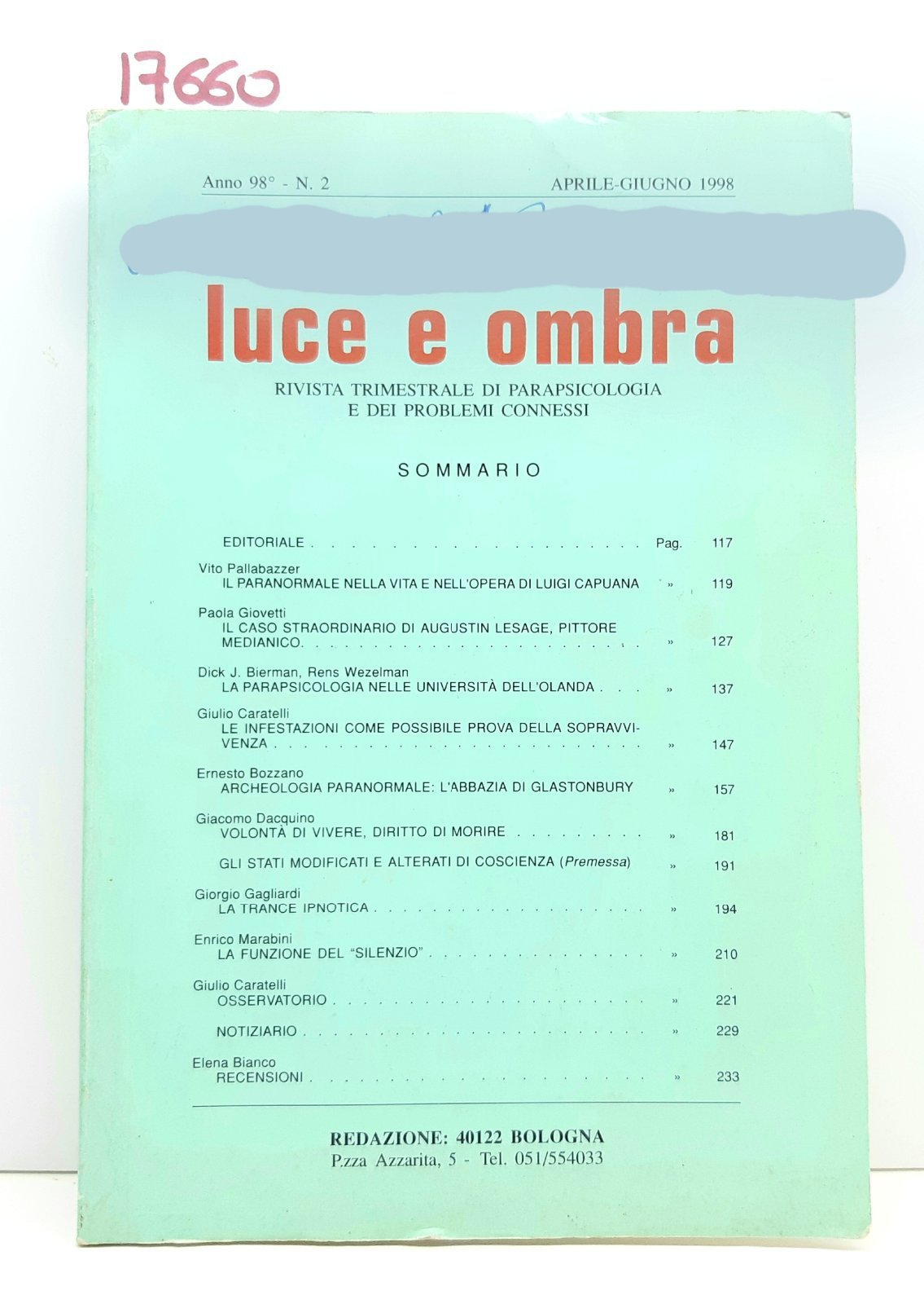 Rivista Luce e ombra numero 2 aprile giugno 1998