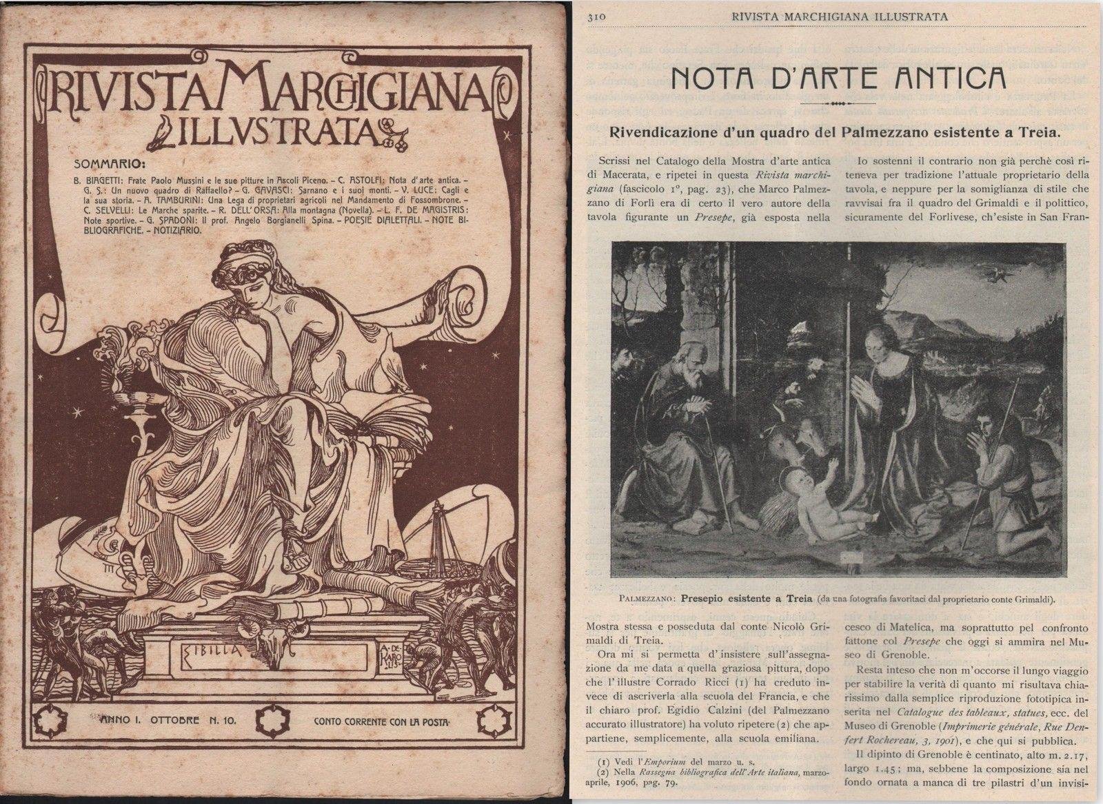 RIVISTA MARCHIGIANA ILLUSTRATA ANNO NUMERI 101906 PP. 32 CM. 30,5 X 21,5 DIRETTORE GIOVANNI SPADONIDIRETTORE ARTISTICO BIAGIO BIAGETTIREDATTORE ARNALDO MARCELLINI. BELLA E RARA RIVISTA MARCHIGIANA ILLUSTRATA DA DE CAROLIS, TRATTA DI ARTE, ARCHITETTURA, INDUSTRIA, ALLA REALIZZAZIONE DI QUESTA RIVISTA COLLABORARONO PIŸ GRANDI ARTISTI DELL'EPOCA' ILLUSTRAZIONI NEL TESTO E INCISIONI DI DE CAROLIS. BUONE CONDIZIONI, COPERTINA CON ALCUNE FIORITURE SPARSE, LEGGERE FIORITURE ALLA PRIMA PAGINA.