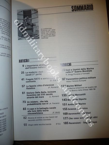 DESCRIZIONE: Stato Maggiore della Marina Roma 1985 n. 11 pp. 192, num. ill. b/n n.t. Indice del vol. in foto a fine inserzione. CONDIZIONI DELL'OGGETTO: Perfette. PESO/WEIGHT: 418 g without package