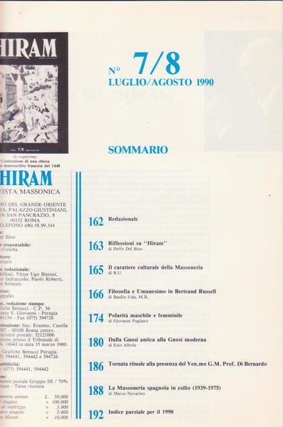 Rivista Massoneria, HIRAM Lug./Ago. 1990 (vedi immagine indice allegato)