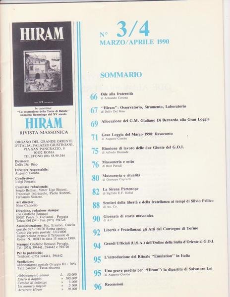 Rivista Massoneria, HIRAM Mar./Apr. 1990 (vedi immagine indice allegato)