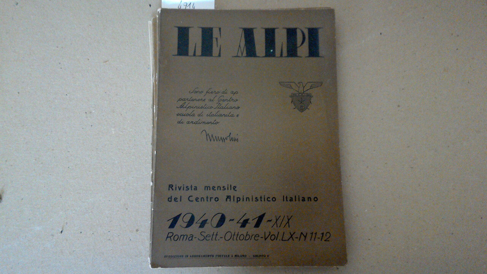 Rivista mensile Centro Alpinistico Italiano - Le Alpi - Volume LV 1940-41 ( 6 fascicoli )
