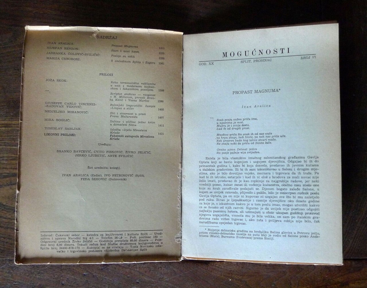 Rivista MOGUĆNOSTI n.12 PROSINAC (DICEMBRE) 1973.KNJIŽEVNOST - UMJETNOST - KULTURNI PROBLEMI[LETTERATURA - ARTE - PROBLEMI CULTURALI]Split (Croazia) 1973,brossura, 23,5x18,5 cm., pp.1311-1424,alcune illustrazioni in bianco e nero,testo in serbo-croato,peso: g.200