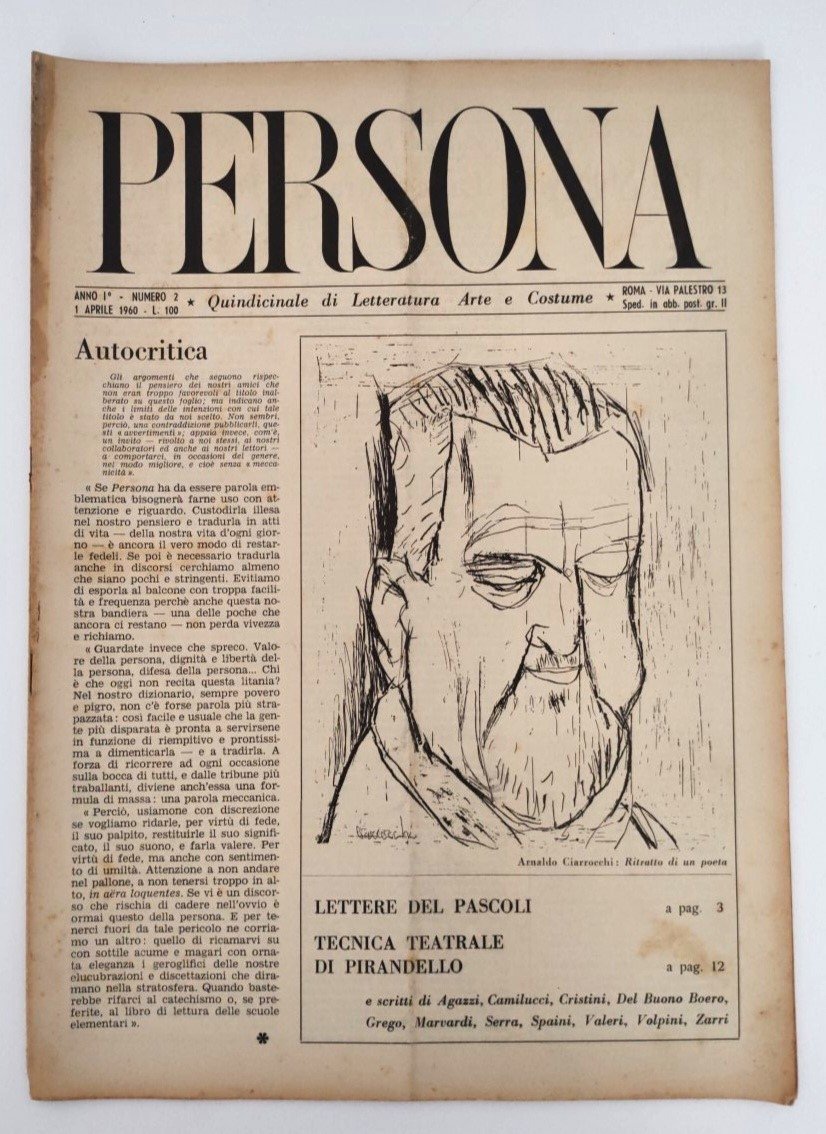 Rivista PERSONA Anno I n.2 1 Aprile 1960 quindicinale di letteratura arte e costume