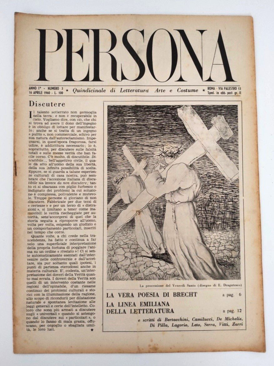 Rivista PERSONA Anno I n.3 16 Aprile 1960 quindicinale di letteratura, arte e costume
