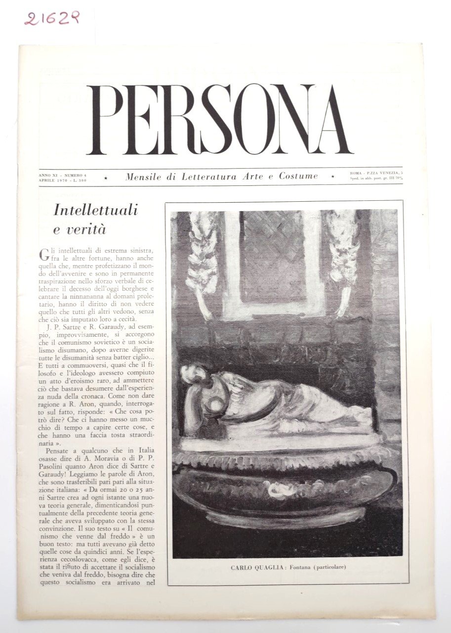 "Mensile di Letteratura Arte e Costume". La copertina presenta un'illustrazione di Carlo Quaglia, intitolata "Fontana". L'articolo principale è intitolato "Intellettuali e verità". La rivista si presenta in condizioni accettabili, con i normali segni del tempo come leggere bruniture delle pagine, piccoli strappi marginali e lievi pieghe dimensioni cm 34 x 24,5