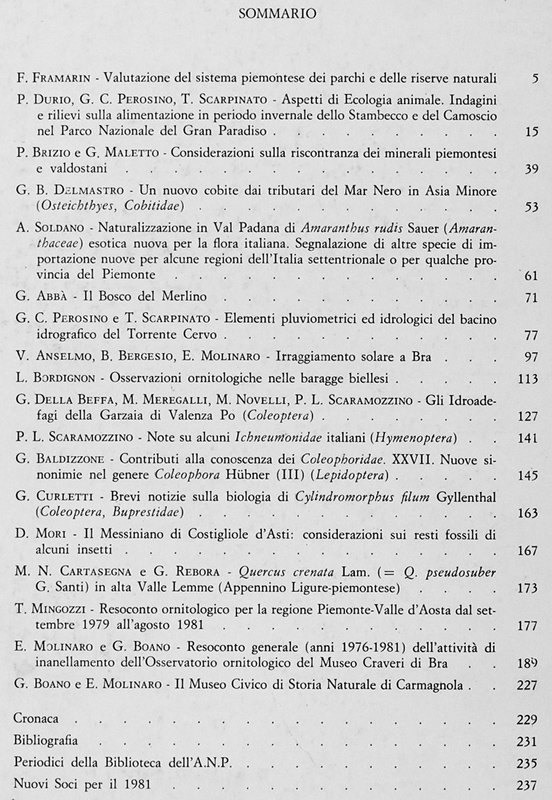 RIVISTA PIEMONTESE DI STORIA NATURALE. Volume III - Anno 1982.