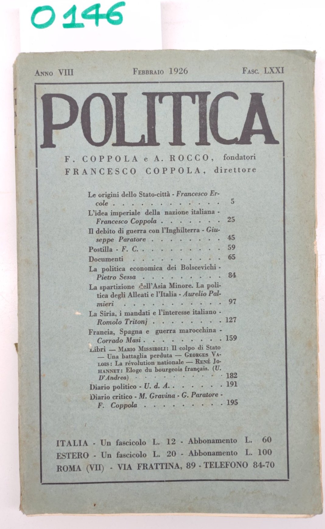 Coppola Rocco Politica febbraio 1926 fascicolo 71