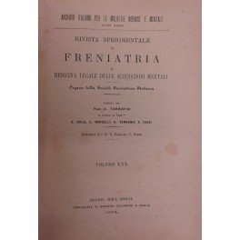 Rivista sperimentale di freniatria e di medicina legale delle alienazioni mentali. Organo della società freniatrica italiana. Vol. XXX - Anno 1904