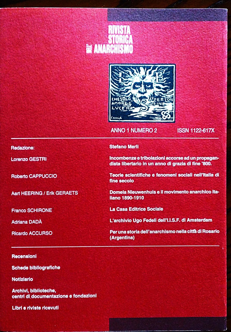 Rivista storica dell'anarchismo. Anno 1 numero 2 Luglio dicembre 1994.